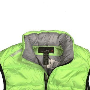 This is a brand new down vest from RLX by Ralph Lauren! It retails for $198, it's bright yellowish green with silver RLX printed on the shoulder and back of neck. Here are the features: