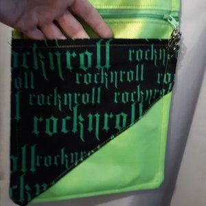 New ROCK N ROLL Vinyl Crossbody Purse Shoulder Bag Black Bright Green Punk Rave