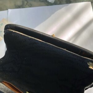 It has damage to the bag and the metal strap. They were tarnished somehow in storage and I tried brass polish on the chain and hinges with sad results someone else might know of a better way to clean it.