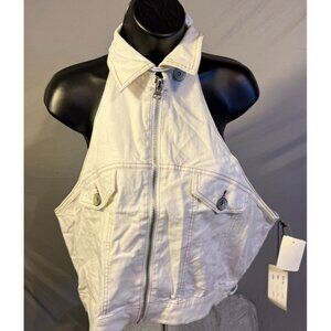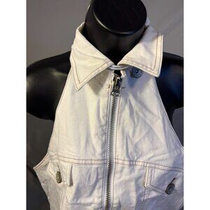 New RVT White Denim Jean Vest Stretch Sexy Layer Moto Vibes Womens PLus XXL 2X