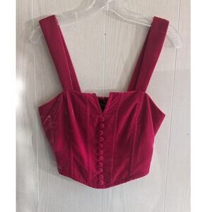New Rachael Zoe Red velvet crop smocked button front tank size small