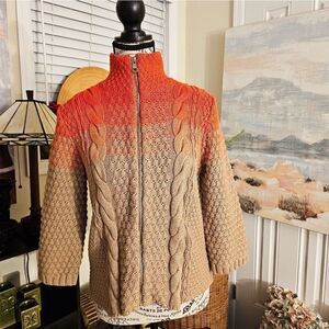 New Rachel Rachel Roy Orange/ Tan Ombra Thick Cable Knit Zipper Front Sweater.