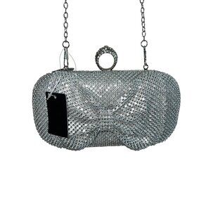 Elevate your evening ensemble with this glamorous rhinestone clutch. Its intricate bow design adds elegance, while the chain strap offers versatile carrying options. Adorned with sparkling rhinestones, this clutch is a statement piece for sophisticated events.