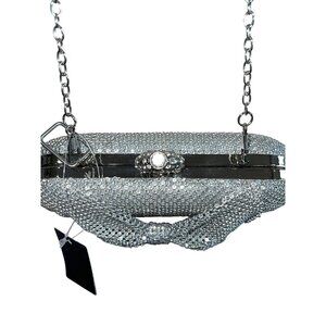 New Rachel Rhinestone Silver Bow Clutch Purse With Chain Strap