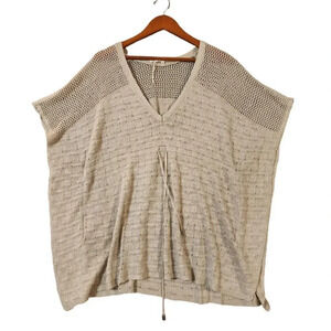 New Rachel Roy Ivory Linen Tie Waist Oversized V-Neck Knit Poncho Top Size M