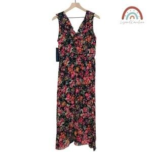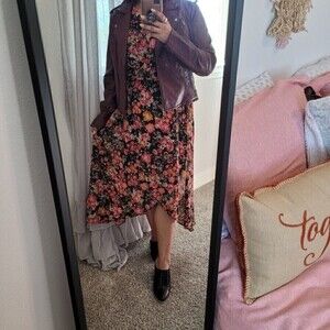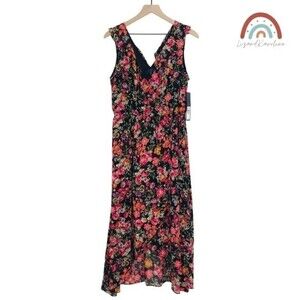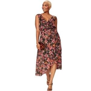 New! Rachel Zoe Dark Floral Faux Wrap Midi Dress
