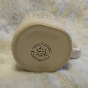 This adorable mug does not come with a tag, but is brand new and never used. It's white with light green words that say, "HELLO SPRING." Dishwasher and microwave safe. Rae Dunn brand.