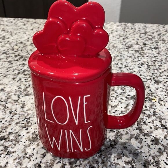 New Rae Dunn Love Wins Mug with Cover