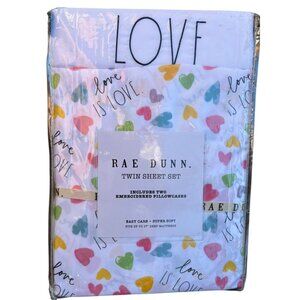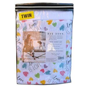 New in package New Rae Dunn Rainbow Heart Love is Love Print Twin 3 Piece Sheet Set Embroidered