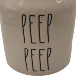 This Rae Dunn canister with lid is new without tags. Etched graphics "PEEP PEEP" Measurements 5" wide x 6" deep. Cute storage for Easter and beyond. Canister will be double boxed and padded for mailing.