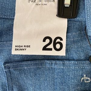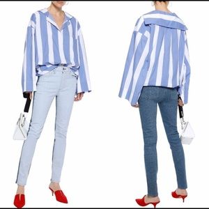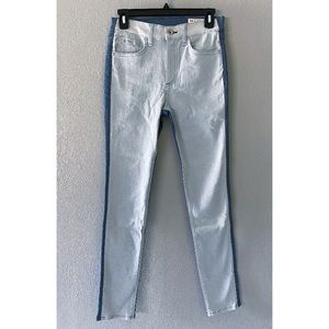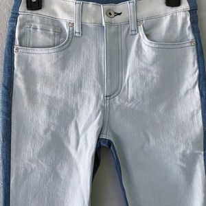 Half light wash, half classic indigo and completely cool, these high rise skinnies garner a second look with their split personality.
