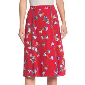 New Rag & Bone Hugo Floral Viscose Midi Skirt Tomato Red 4-6 fit $395