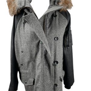 New Rag & Bone Wool Leather Faux Fur Trim Zip Up Hooded Coat Quilted Lining