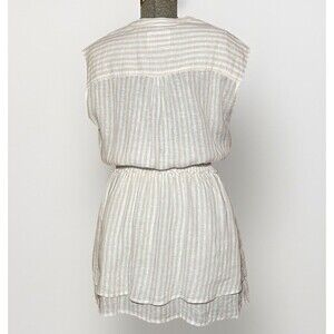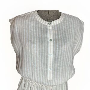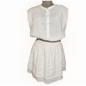 Rails, Angelina Dress, Dune Stripe, NWT, linen blend, stripe, neutral, summer dress, coastal, resort, vacation, beachwear, button front, elastic waist, tiered hem, feminine, XS