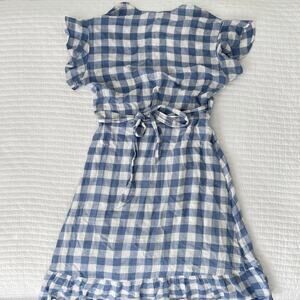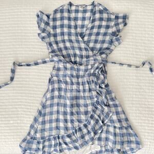 New Rails "Brigitte" a-line, ruffled, wrap dress in periwinkle blue and white gingham check, size S.