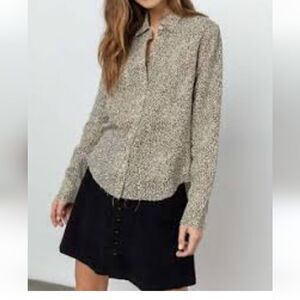 New Rails "Ingrid Raw Jungle" Tan Leopard Print Raw Hem Button Down Shirt Sz. XS