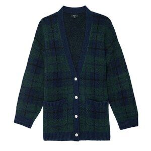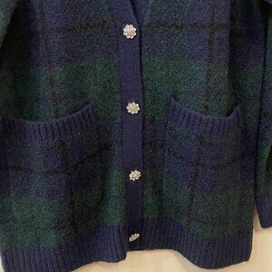 New Rails Runi Tartan Jeweled Button Cardigan Navy Green XS $268