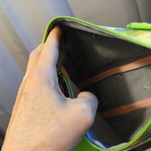 Additional lime green matching webbing crossbody strap, adjustable length