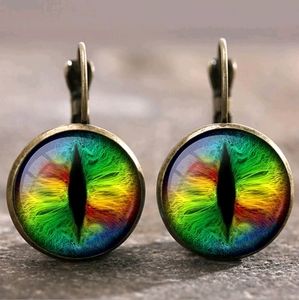 New Rainbow Dragon Eyes Glass Cabochon Bronze Earrings.