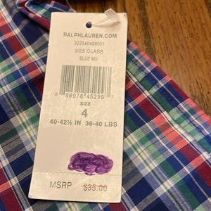 New Ralph Lauren size 4t. It’s blue white green and red.