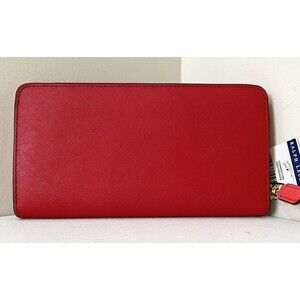 New Ralph Lauren Accordion Zip Wallet Leather Red