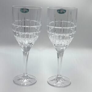 New Ralph Lauren Cocktail Party Two Lead Crystal Glasses Wine Water Goblet Made in Germany