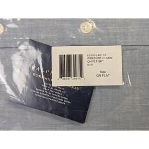 New Ralph Lauren Queen Flat Sheet Workshirt Chambray Blue Preppy Cotton Classic