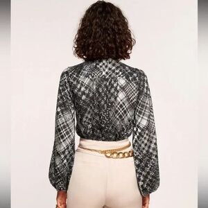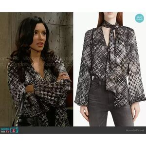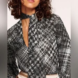 New Ramy Brook Aliyah V Neck Blouse in Houndstooth Burnout Size Large