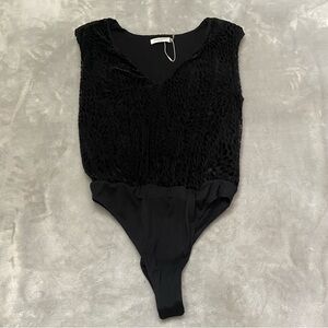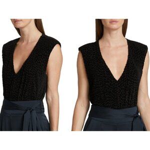 New! Ramy Brook Black Regina Embroidered Bodysuit 21751
