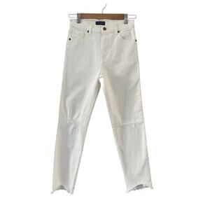 New Ramy Brook, Langley, Lightly Distressed Crop Jeans, Ivory Shark White, Sz 24