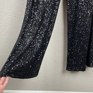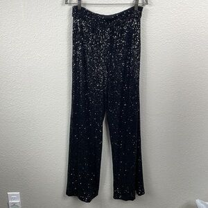 New Ramy Brook Lavenia Sequin Wide Leg Pants Black Sparkle Party Sz 6