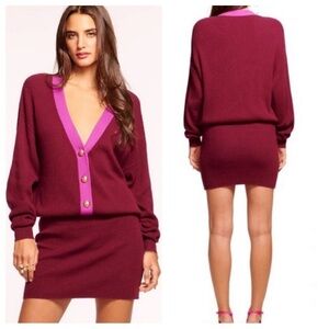 New! Ramy Brooke Andrea Contrast Placket Long Sleeve Sweater Dress 33942