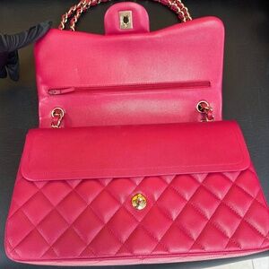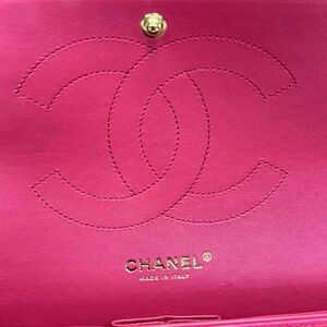 New Rare CHANEL Fuchsia Pink Large Classic Flap Bag Grained Calfskin Gold metal