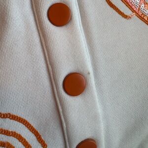 This set has sequins, metallic accents, and stitched embroidered appliqués. It’s fabulous! Both size XS but perfect for size small as well. Oversized. If interested in only the top or bottom just let me know. 🧡🤍🧡