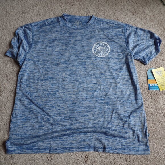 New with tags, rash guard, men's size XL. Banana boat brand, blue and white heather pattern. Key West Florida Stay Salty logo.