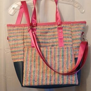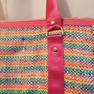 New Rasta Rainbow Tapestry & Faux Leather Shoulder Bag Purse Crossbody Pink Blue
