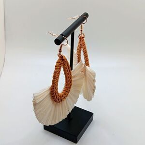 Women's New Rattan, Straw, Wicker, Tear Drop Earrings. Very Lightweight Durable.
