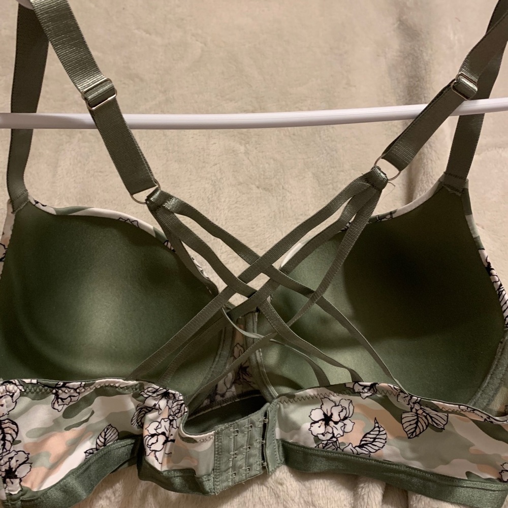 Green camp Razorback bra with black flowers, lightly padded with underwires New, never worn.