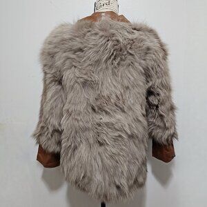 New Real Fox Fur Lamb Leather Jacket Blazer Brown Stone Taupe No Mink
