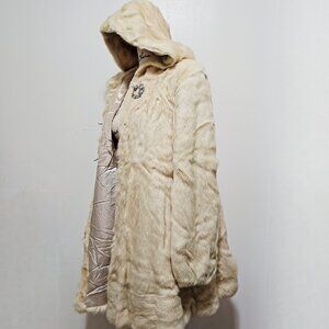 New Real MINK Fur Coat Jacket Stroller Beige Cream White Palomino Gold Hooded