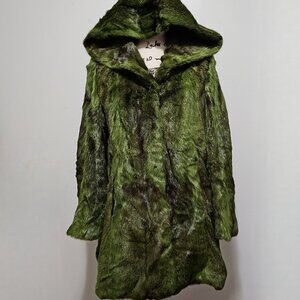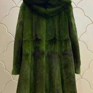 New Real MINK Fur Coat Jacket Stroller Hooded Forest Green Seaweed Moss No Fox