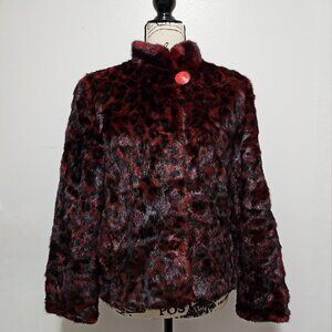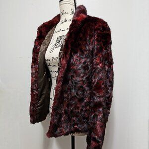 New Real Mink Fur Jacket Blazer Coat Dark Red Black Animal Print Leopard Dotted