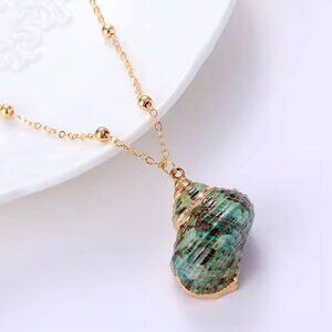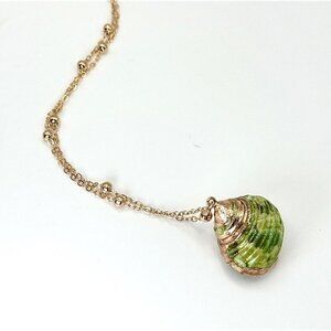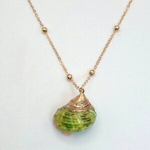 New Real Seashell Pendant Necklace 14K Gold Plated Statement Beaded Chain