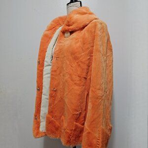 New Real Semi-sheared MINK Fur Coat Jacket Stole Coral Orange Tangerine No Fox