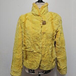 New Real Sheared Striped Mink Fur Coat Blazer Jacket Yellow Gold Mustard Lemon