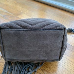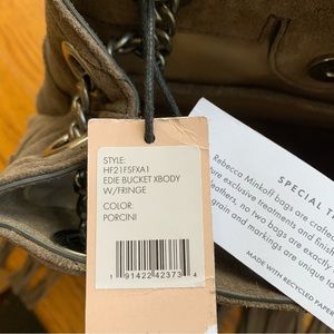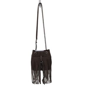 New Rebecca Minkoff Edie Fringe Quilt Suede Bucket Crossbody Bag Purse Handbag in Porcini