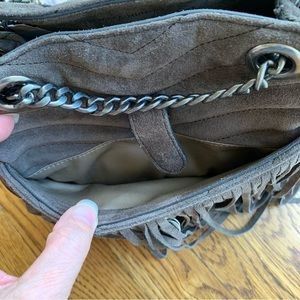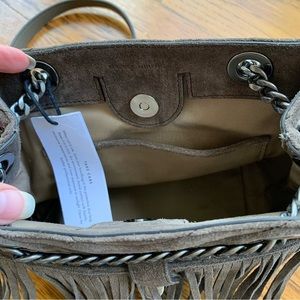New Rebecca Minkoff Edie Fringe Quilt Suede Crossbody Bag Purse Handbag, Porcini