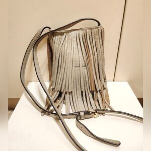 New Rebecca Minkoff Gray Pebbled Leather Fringed Crossbody Phone Bag Ret. $195