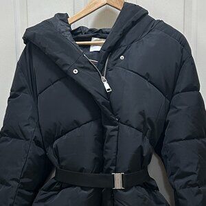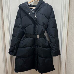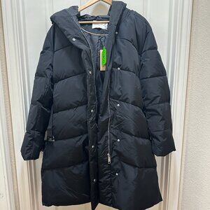 New Rebecca Minkoff Hooded Longline Heavyweight Puffer Jacket Coat Size XL Black