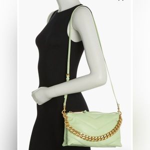 New Rebecca Minkoff Leather Edie Maxi Crossbody Shoulder Bag Mint Green